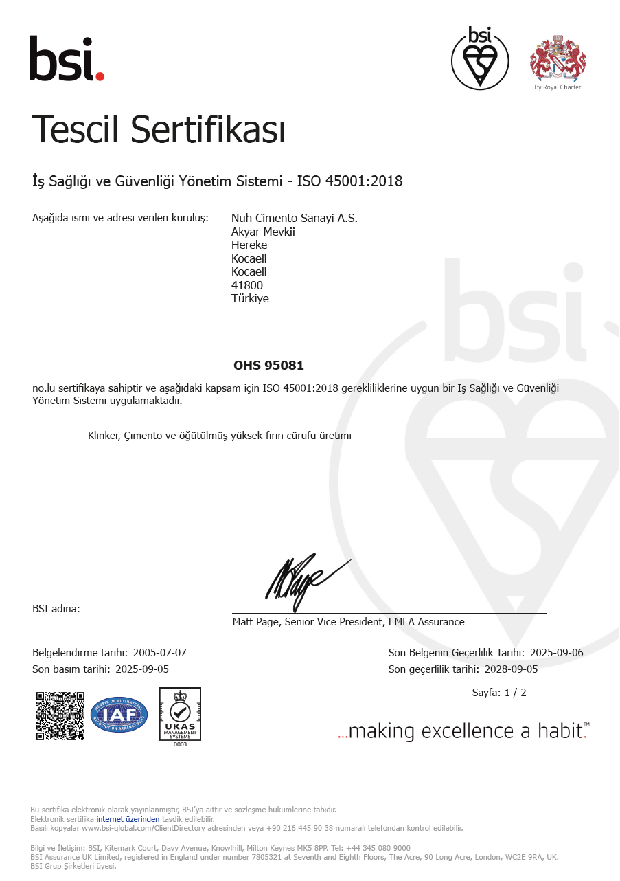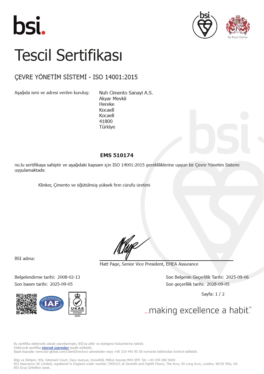 As NUH ÇİMENTO SANAYİ A.Ş. in order to prevent the intense energy consumption required for cement production, during all our activities we commit,